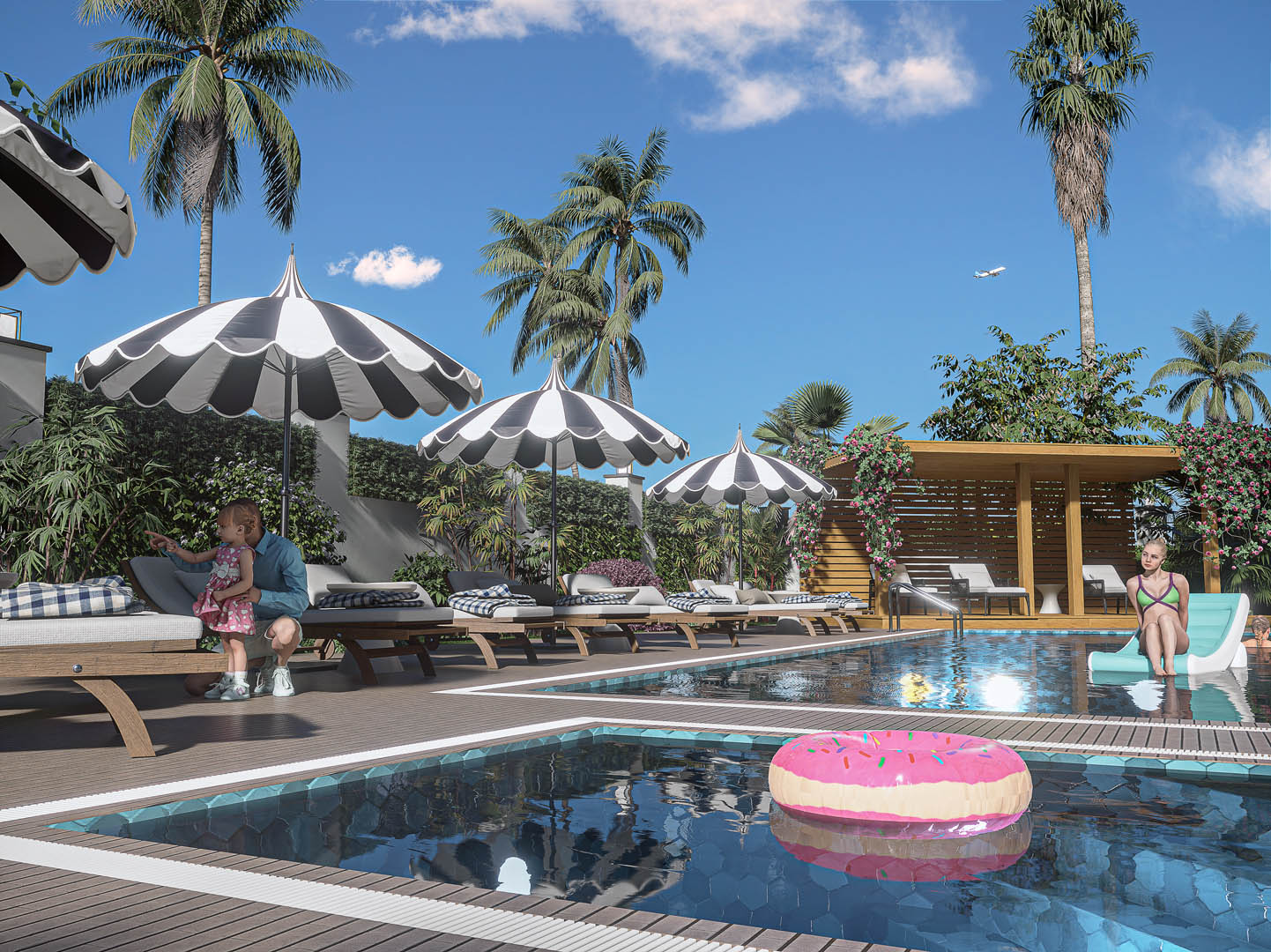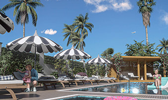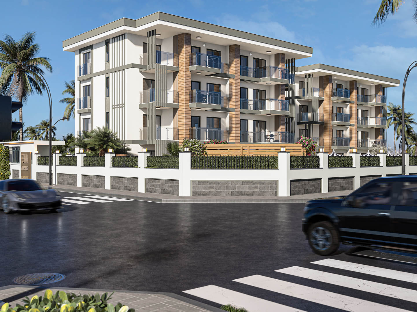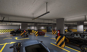 Swimming pool / Indoor parking lot / Outdoor parking lot covered with awning for 7 cars / Generator / 24/7 closed circuit camera system / Modern landscaping / Automatic irrigation system / Automatic rail door with vehicle recognition system / Central satellite