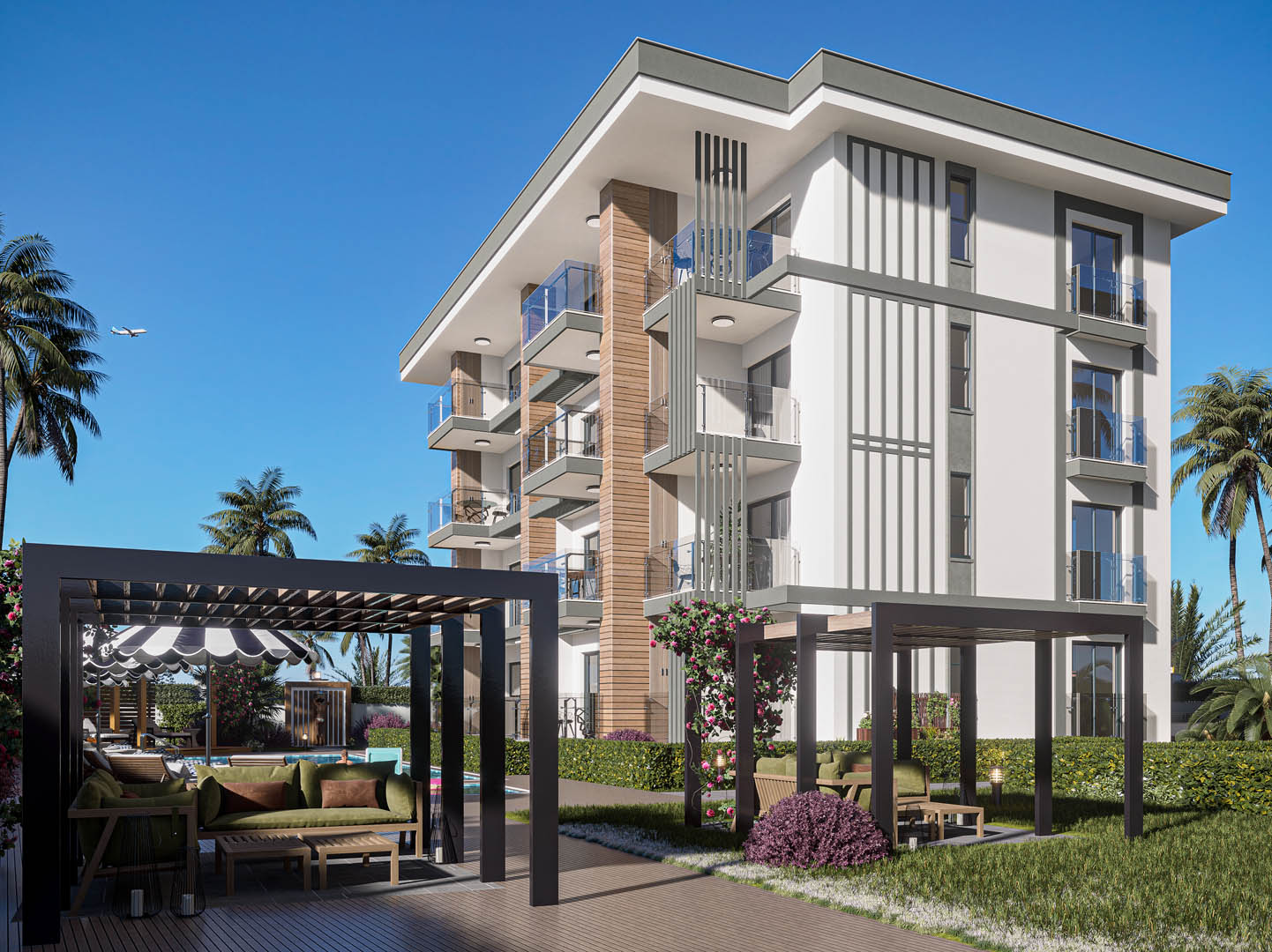 Having a 65 m2 swimming pool, Eva Airport was designed to have a green area of 610 m2 and a parking garage for 25 vehicles. Eva Airport has a location that gives you peace of mind, as being intertwined with nature, in the Altıntaş quarter of Aksu district of Antalya. It is close to central places where you can meet all your needs.