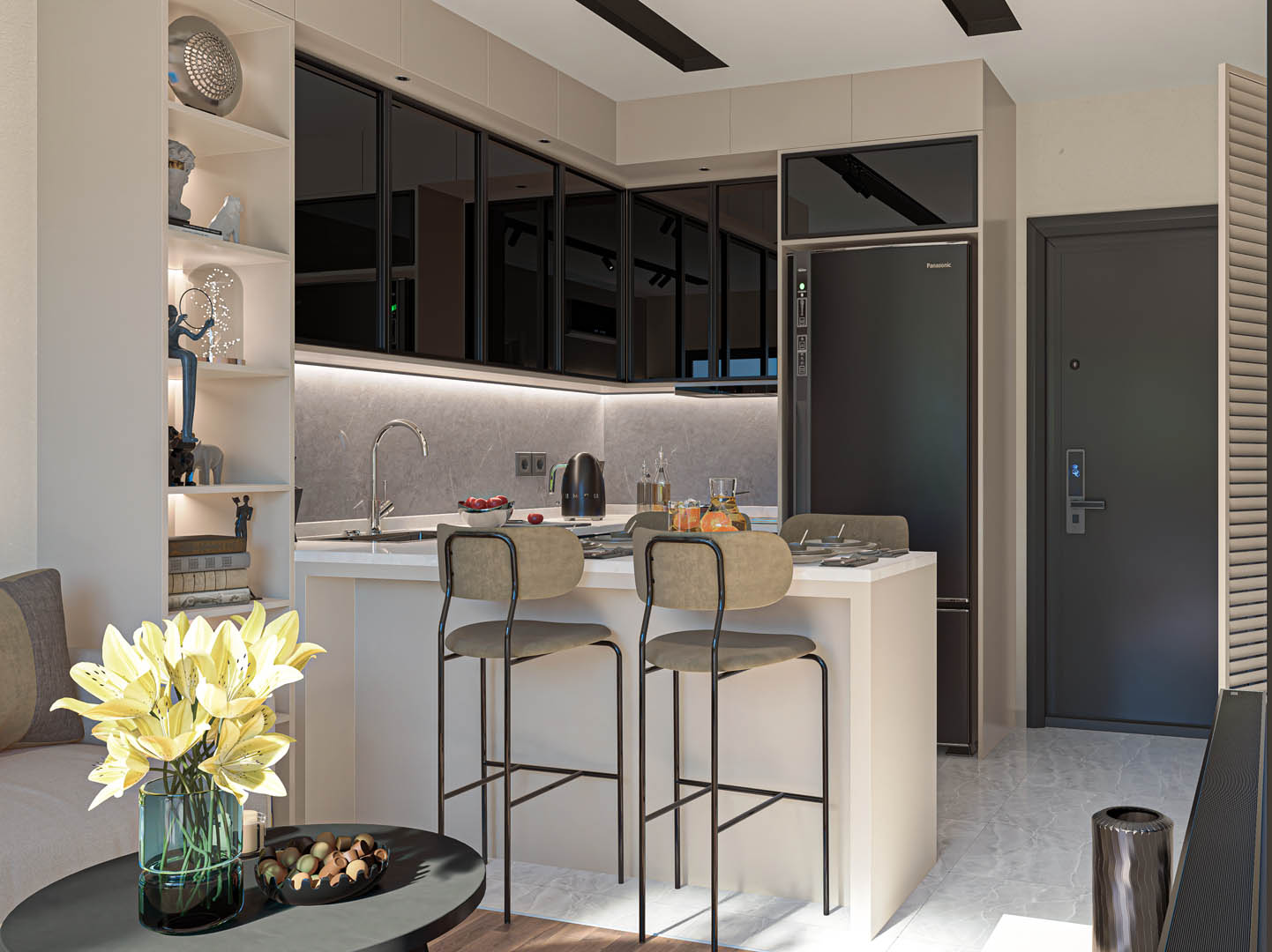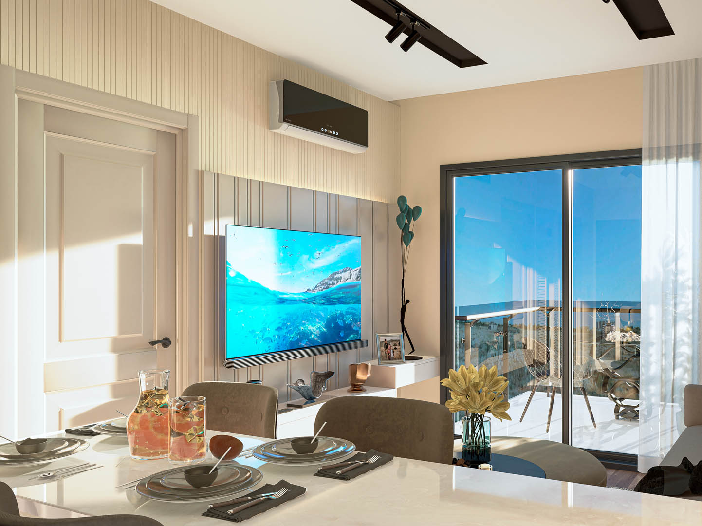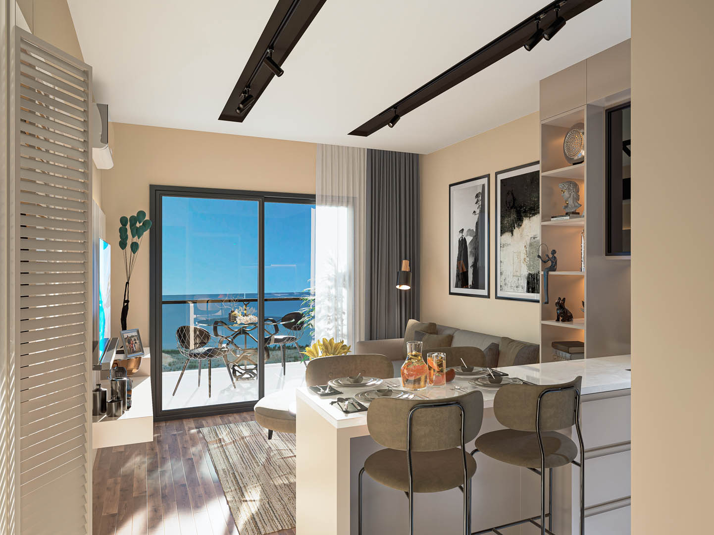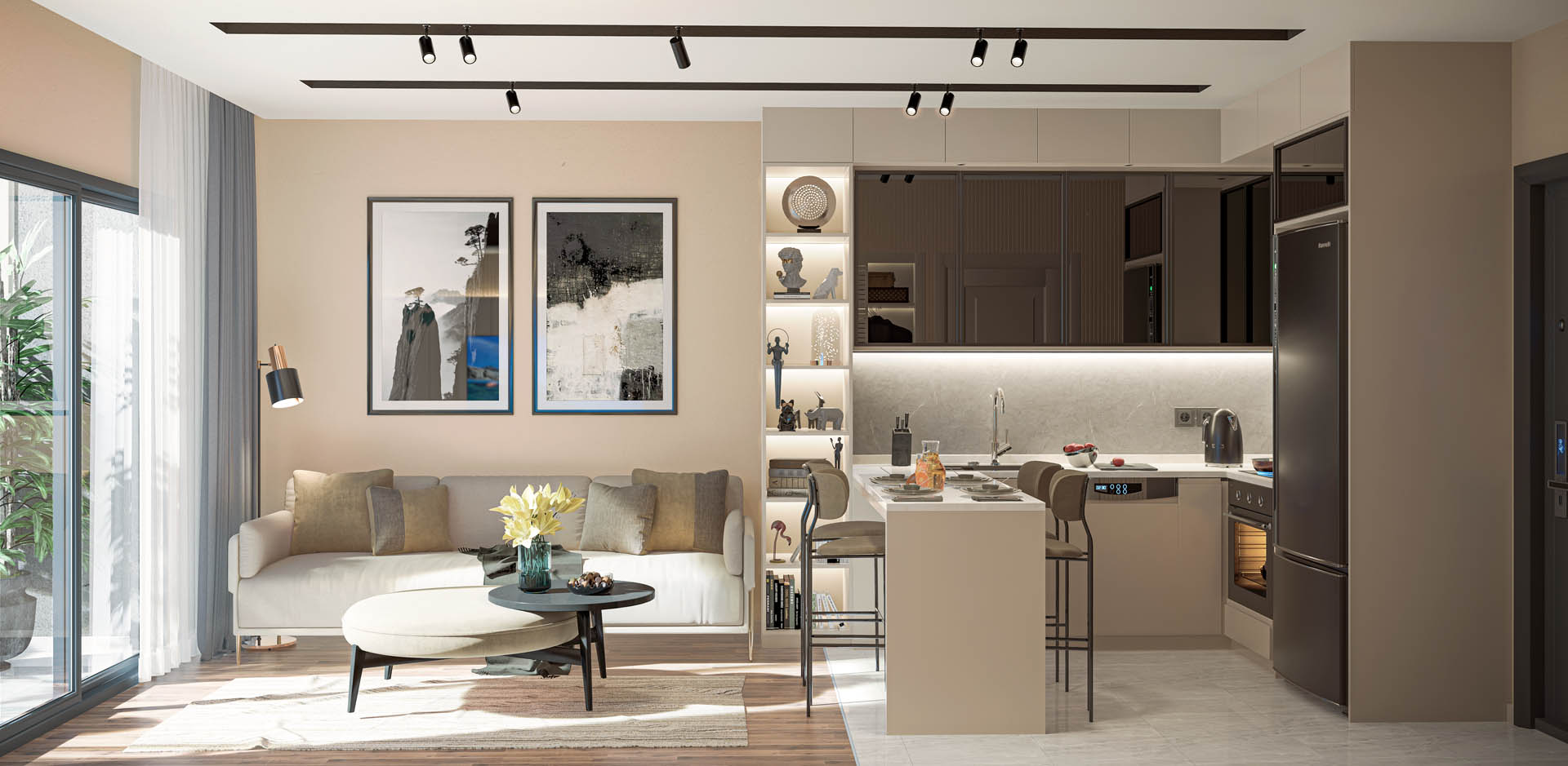 1st class multi-point locked steel door / Adopen Joinery and Insulating Glass / Electric motorized blinds / 1st class laminate flooring / Built-in set / 1st class mdf lam veneered kitchen / Vitra Sanitary Wares / Artema mixers and shower cabin / Silent serial infrastructure plumbing / Knauf Suspended ceiling systems / Split system air conditioners / Hes brand infrastructure electrical cables / Siemens Fuse groups / Viko Modular serial switch socket group / Video intercom system / Siemens Instantaneous water heater / Central satellite system / Dyo Erasable nano interior paints / Lacquer cloakroom and interior doors